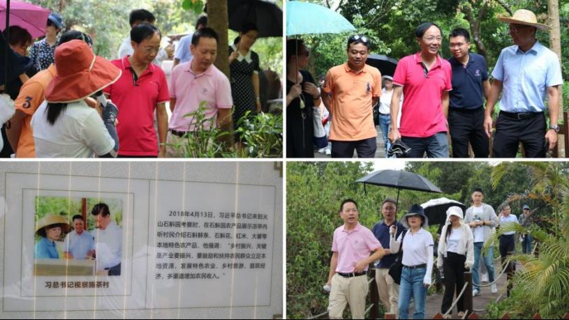 党日活动中,全体教职工党员重走习近平总书记走过的路,体悟总书记在乡村振兴事业中的讲话。2018年4月13日,习近平总书记来到施茶村考察,总书记嘱托:“乡村振兴要靠产业,产业发展要有特色,要走出一条人无我有、科学发展、符合自身实际的道路。”在讲解员的带领下,一行人参观施茶村火山石斛产业种植园,了解到昔日寸草不生的荒山石堆,如今成了让村民增收致富的金山银山,体会到了施茶村人民艰苦创业、不断试错、勇于尝试的奋斗精神。